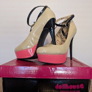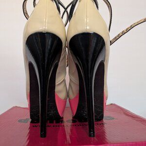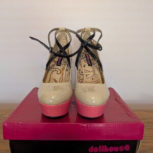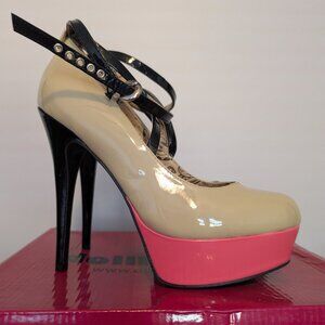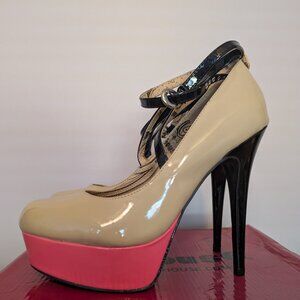 Tiny scuff on right shoe. Platform area towards bottom, inner side (last photo)