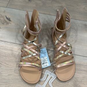 Step out in style with these chic strappy sandals. Perfect for any occasion, these sandals feature a beautiful blend of pink and gold tones. New with tags.