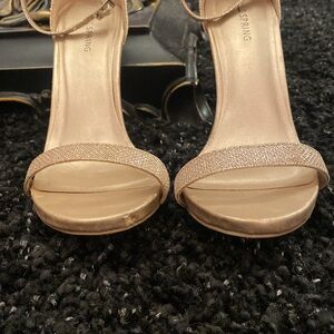These heels by “Call it Spring” are perfect for ANY holiday outfit. They are a champagne-ish color but sparkle with silver and gold flecks depending on the lighting. I would say more silver than gold but but hard to tell- just so shimmery!