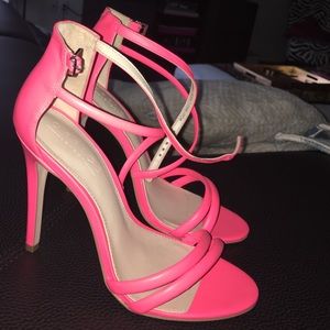 Gorgeous topshop neon pink strap sandals. Nearly perfect condition- worn only once. Super stylish and automatically complete any look with these! I am usually an 8.5 and these fit me perfectly.