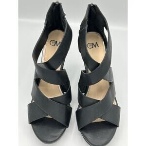Strappy 4 inch wedge heel gladiator sandals in black size 8.5 wide. Zippered at back of each heel. Man made materials. Sexy!
