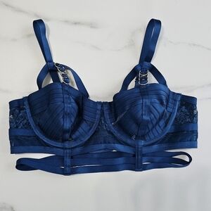 Straps And Rings Satin Underwire Bra With Mesh Cup