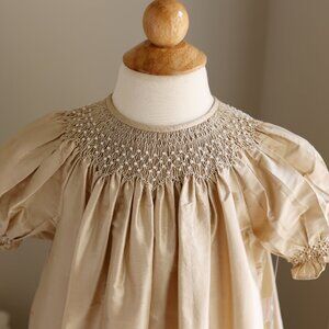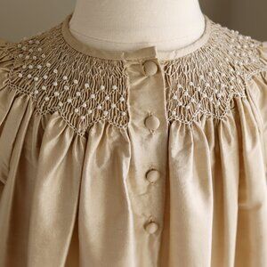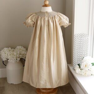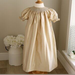 Strasburg Dress Smocked Champagne Gold Silk Bishop Hand Smocking Pearl LIKE NEW