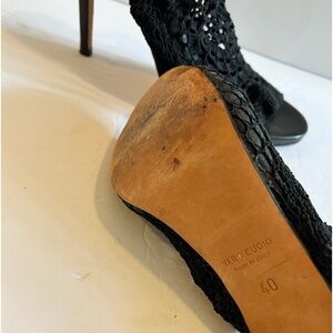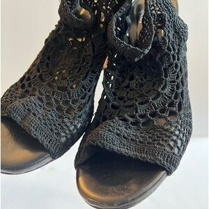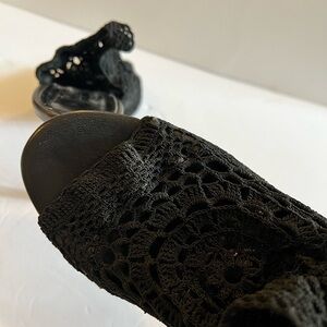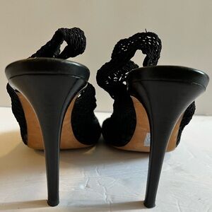 Strategia Black Crochet Leather Slingback Open Toe Heel