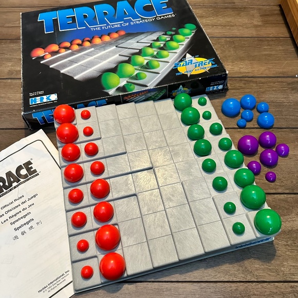 "Accept the challenge of the final frontier...face the game played aboard the Starship Enterprise...Terrace...Takes only minutes to learn yet will thrill you with its infinite possibilities and unexpected complexities. Terrace...the game that will challenge your mind and excite your imagination."