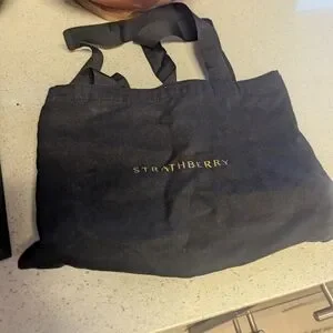 Strathberry black accessory box and carrying bag. Perfect for organizing your essentials in style and protecting purses for travel and storage