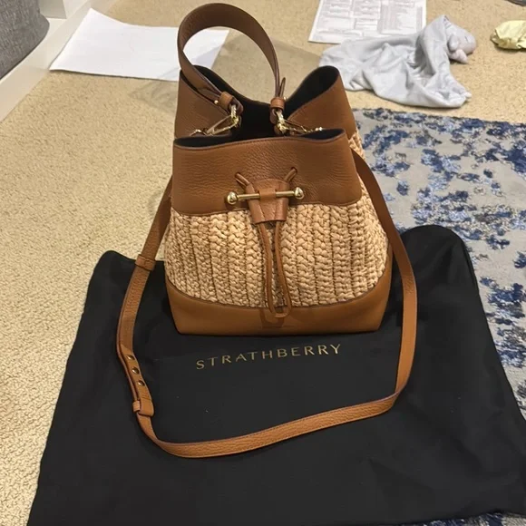 The Strathberry Shoulder Bag in tan and cream is a sophisticated accessory that combines elegance with practicality. Crafted with premium materials, it features a structured design and luxurious leather accents, making it perfect for both casual outings and upscale events.