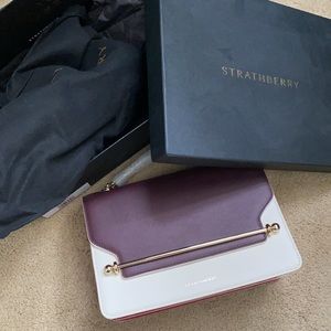 Never worn A/W 2017 Strathberry East/West bag. deep purple, cream & red, gold hardware. Original box, bag & paper stuffed inside. Price is firm.