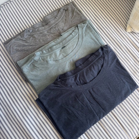 Bundle of three Strato tshirts. Navy heather, Heather Gray, and sable heather. (I think, could be wrong!) Navy Heather was likely worn the most but good used condition on all.