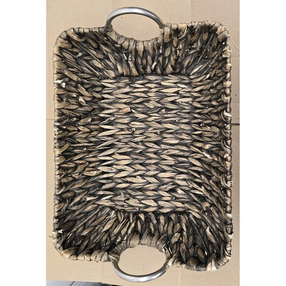 This 14 x 10.5 Wicker Basket/Serving Tray with Metal Handles is a stylish and versatile piece for your home. Made from dark brown Wicker material with an all-over pattern, this Large-size tray comes with convenient metal handles for easy carrying. Perfect for all occasions, this rectangular tray is easy to fill and adds a touch of design to your kitchen or dining area. The combination of wicker and straw materials gives it a unique and rustic look, making it a practical and decorative addition to your serveware collection. Refer to the pictures for a better look at the condition.