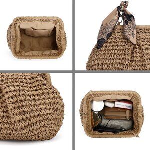 Material: This straw dumpling clutch is made of high-quality natural straw, lightweight and practical. It goes well with summer dresses or casual, perfect wear for summer days. Perfect for holding cellphones, wallets, sunglasses, cosmetics, folding umbrellas, and other personal items.