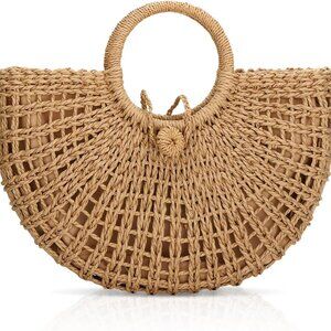 Features: Handmade, lightweight woven tote with drawstring closure. Spacious enough to hold your phone, iPad, magazines, sunglasses, and essentials — great for trips to the beach, shopping, or casual outings. The natural straw material gives it a cute, boho vibe that pairs effortlessly with summer outfits.