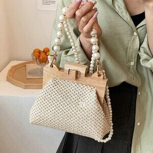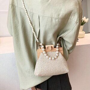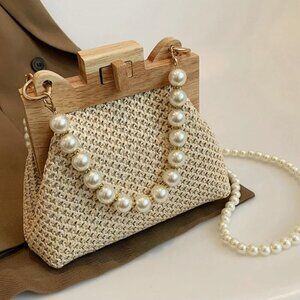 Straw Beach Bags For Women Summer Straw Cross-body Bag Raffia Handbag Pearls Pur