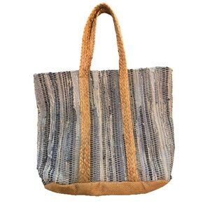 Straw Beach Shoulder Bag Boho Woven Mudpie India Jute Raffia Blue Metallic