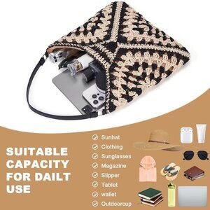 Features: Large capacity tote with a woven straw design, easy to fold and lightweight. Spacious enough for your wallet, phone, sunglasses, umbrella, and even a swimsuit or slippers. Perfect for carrying everything you need without feeling heavy.