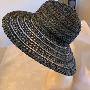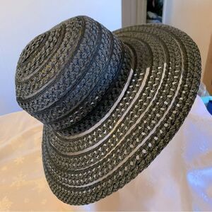 Straw Blend Hat Black w/ Sheer Detail Sz OSFA Gorgeous NWOT