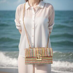 Straw Clutch Crossbody Bag — Perfect for summer outings and beach days.