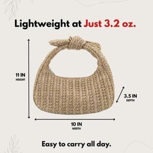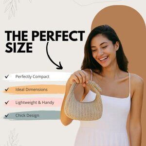 Features: Handwoven raffia in a structured, mini silhouette with a designer-inspired knotted top handle. Features a secure zipper to keep your essentials safe, lightweight for travel, and versatile enough for day-to-night looks.