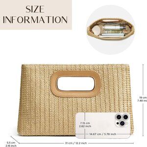 Features: This lightweight straw tote has an elegant design with a chic cutout handle, perfect for beach days, casual outings, or elevating your summer vibe. Spacious enough to hold all your essentials, making it super convenient for daily use or travel.