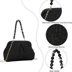 Straps : The straw clutch purses has a short bead top handle and a long detachable chain shoulder strap, Can be used as a clutch purse ,shoulder bag,crossbody bag, handbag, tote ,satchel , etc., to match different clothes and places.