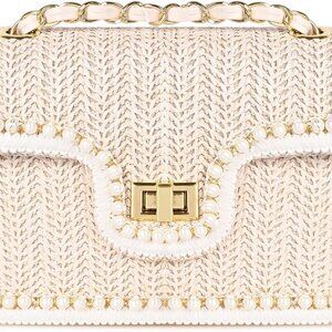 Straw Crossbody Bag Women Summer Pearl Woven Shoulder Vacation Handbag