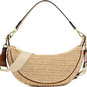 Straw Crossbody Bag Women Summer Woven Shoulder Handbag with Adjustable Strap