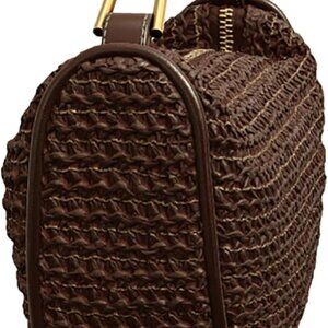 Straw Crossbody Bag Women's Mini Summer Satchel with 2 Straps Zipper Closure