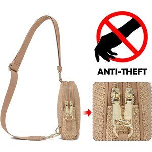 Straw Crossbody Bag Women's Small Sling Bag Travel Purse RFID Blocking