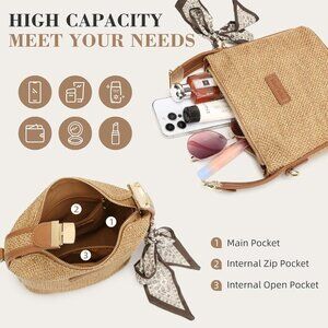 Straw Crossbody Bag Woven Design for Travel Beach Summer Purse