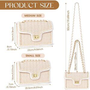 Features: Cute and lightweight woven straw bag with a stylish pearl detail on the front. Features a flap closure and a long chain strap that’s adjustable for crossbody, shoulder, or handbag wear. Perfect for carrying essentials while adding a touch of elegance to your casual look.