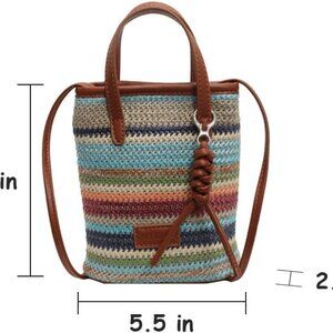 Features: Lightweight and compact crossbody bag made with stylish straw weaving. Features a strong magnetic snap for easy access and secure closure. Designed to hold your phone, keys, and small essentials effortlessly, making it a great beach or travel companion.