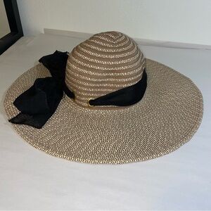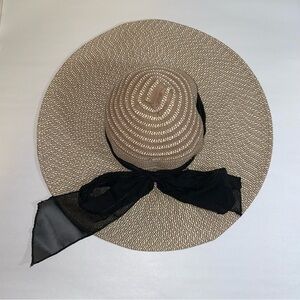 Straw Floppy Sun Hat with Black Bow Sash Detail