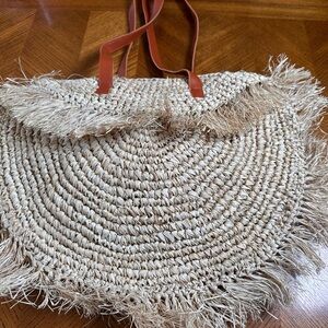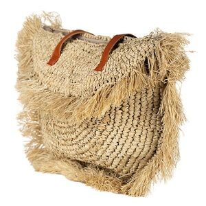 Straw Fringe Moon Tote