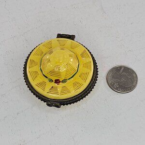 Straw Hat Themed Mini Hat Inside Porcelain Hinged Trinket Box Collectible