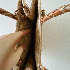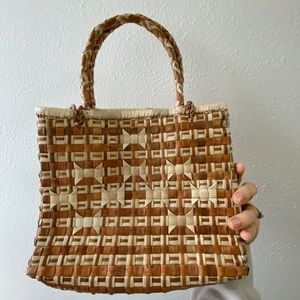 GORGEOUS handle bar woven bag. One tiny flaw which is pictured. Perfect for beach vacations coming up! One note: the bag does not stand up by itself.