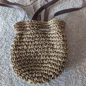 This drawstring bag has been crafted from straw and comes with brown-colored PU leather trims.