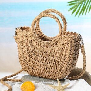 Straw Purses Women Semi Circle Rattan Bulk Handles — A chic, versatile accessory for any warm-weather look.