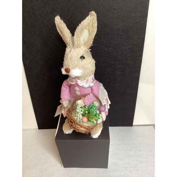 New with tags. Dressed like a lady in a dress and jacket with pearl buttons,a sweet rabbit carries a woven basket full of greens and ornaments..height9.46” wide 4.33