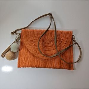 Straw Raffia Crossbody Wristlet Envelope Purse No Brand Orange