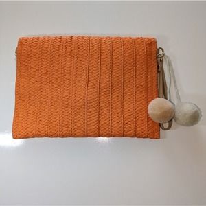 Straw Clutch Crossbody Handbag Envelope Purse Woven PomPom Orange Boho Bag for Beach, Parties, Summer Vacation, and many more adventures.