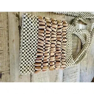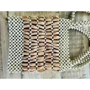 Straw Studios 100% Wooden Beaded Crossbody Purse Boho Tropical Beach