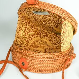 Straw Studios Hand Woven Purse Round Straw Rattan Weave Boho Festival Coastal