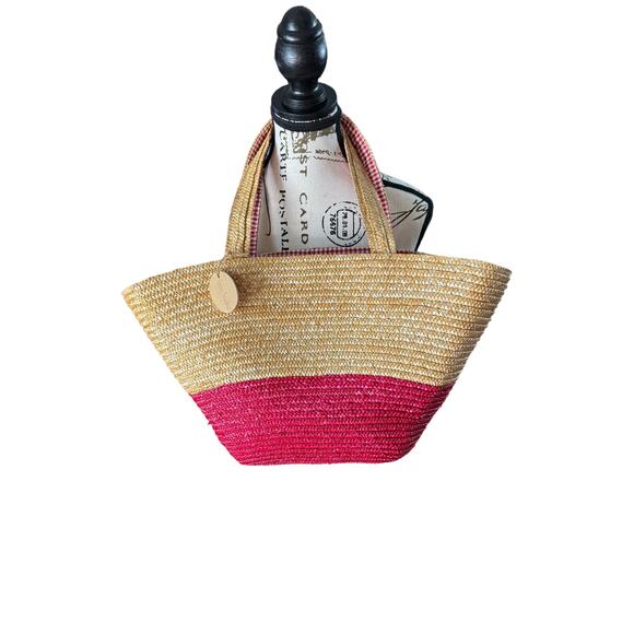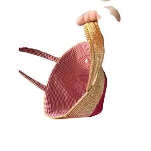 Straw Studio/ straw/wicker handbag, picnic tote or cart it all bag. Inner lining is red/white checkered material. One inside pocket . Height 16”, width 11”. Thank you for checking out my listing. Be sure to check out the rest of my site.