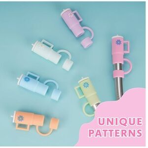 Set of 6 straw toppers in green, white, blue, yellow, and pink. Soft silicone design adds a fun, decorative touch to cups and straws. BPA-free material is safe for everyday use. Bright multi-color mix complements kids’ and casual drinkware.the packaging might be damaged but the item is unused new