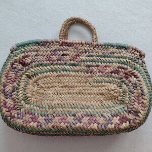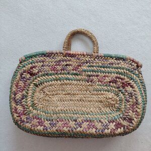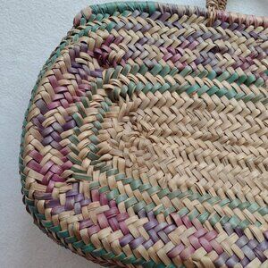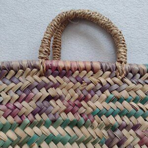 Straw Tote Bag Medium Natural Purple Green Handwoven Shopping Tote