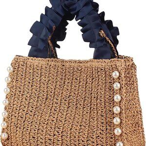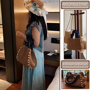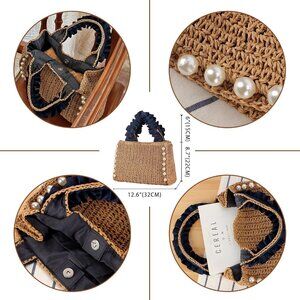 Straw Tote Bag Women Pearls Woven Handbag Summer Beach Travel Purse
