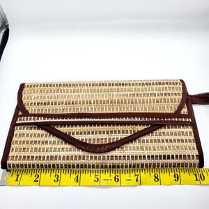 Straw Woven Tan Brown Trifold Envelope Clutch Wallet Size Small Unbranded