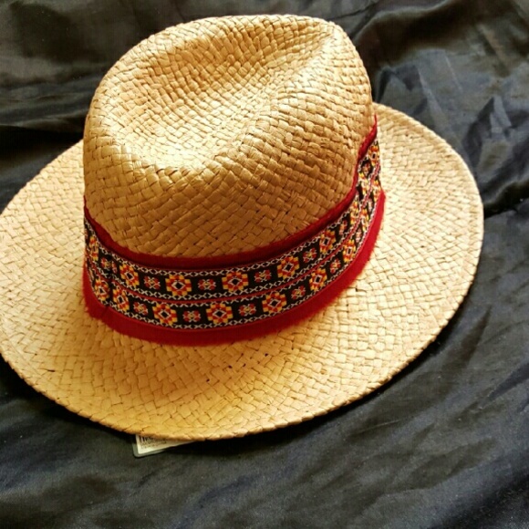 Straw hat with a red tribal band