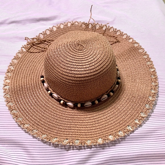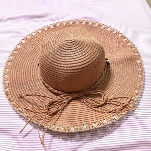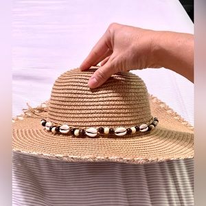 Beautiful straw hat with gorgeous shell detail around it which give it a super cute beachy vibe. Perfect for those summer days at the lake or the beach and vacationing in the tropics. It has an elastic inside to avoid it from flying away with the wind. Only used it once. It’s in excellent condition!