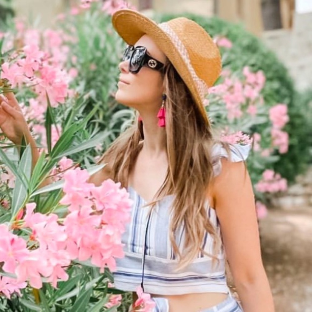 Straw hat for added shade on that pretty skin of yours. Labeled one size and measures 22” as perimeter inside of hat.